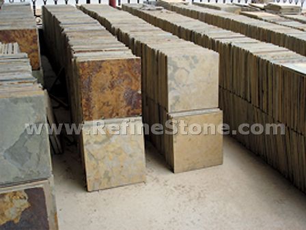 Slate tile flooring has been commonly used in kitchen, bathroom, patio and pool areas while slate walls are increasingly seen in both interior and exterior applications. As one of the leading natural slate manufacturer, Refine Industrial Co.,LIMITED specializes in slate tile fabrication. We offer large selections in color and finish options. The popular slate tile colors in North America include rustic yellow, golden yellow, gray, green and black. Significant color variations do exist with almost all slate tiles, which however makes a slate tile floor or slate wall more attractive. Certain maintenances are necessary for slate tile floor and slate walls. There are several finishes available for slate tiles. Honed slate and tumbled slate are popular options. Bottom of the slate tiles is typically honed to be rather flat while their surfaces are generally riven, showing its natural and rough split, with edges tumbled. As a result, there could be up to 1/4" difference in the heights on the surfaces of slate tiles.