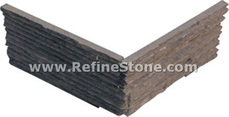 There are several kinds for the stone veneer corners. It can be two-piece glued together, or solid one piece(at the corner). For different culture stone veneers, we have different corners for each type.