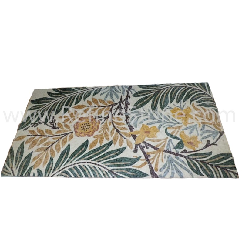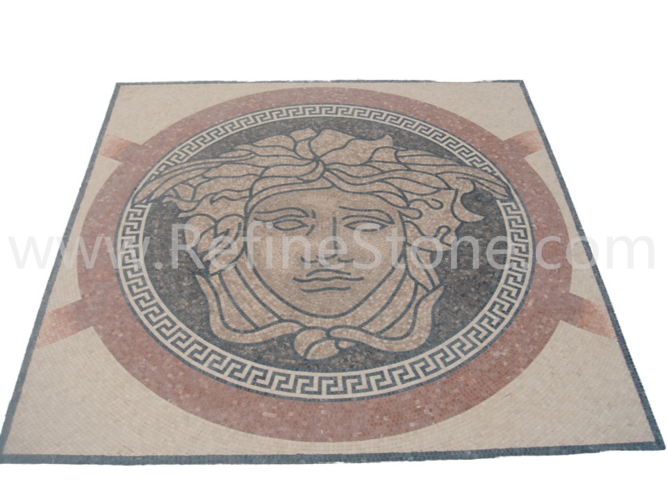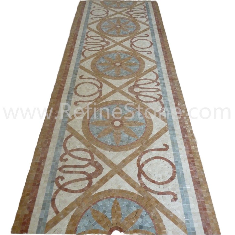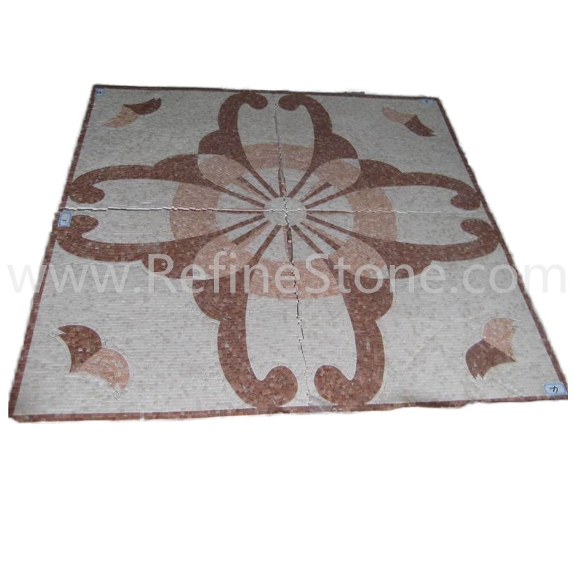 A set of marble or other stone mosaics in proper mosaic designs have broad applications. More and more mosaic floors, mosaic ceilings, mosaic walls and outdoor mosaic paving are seen in modern building construction projects. Refine Industrial Co.,LIMITED designs and produces hundreds of beautiful styles of the stone mosaics, including marble mosaic, granite mosaic, onyx mosaic, travertine mosaic and mixed stone mosaic, in the form of stone mosaic pattern, marble mosaic medallion, marble mosaic tiles, stone mosaic arts and stone mosaic border. All our stone mosaics are mounted on sheets and ready for installations. Our stone mosaics are fully customizable in dimension, chip color, chip size and chip shape. We have large production capacities for the production of stone mosaic items. Special discounts on large orders of all stone mosaic products.