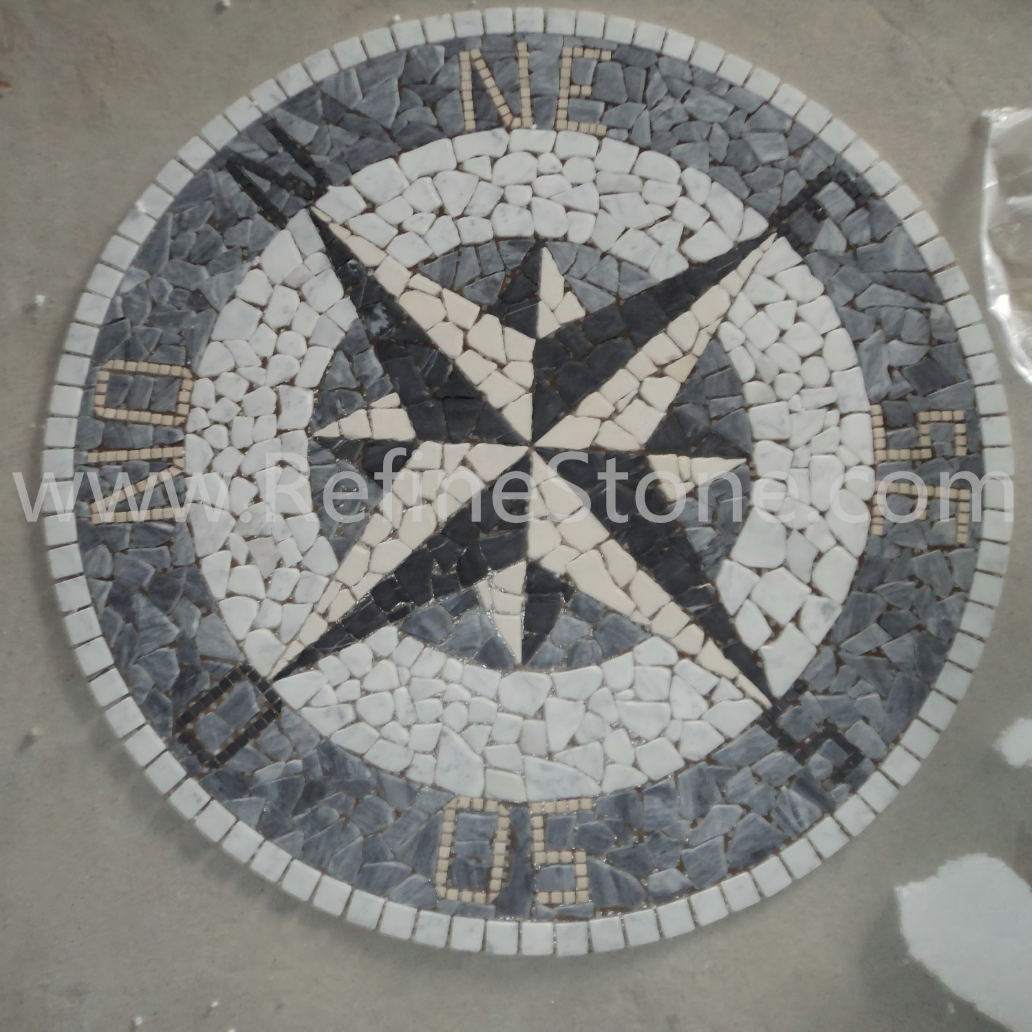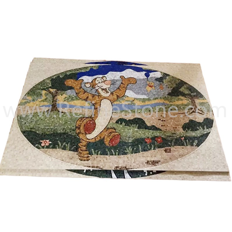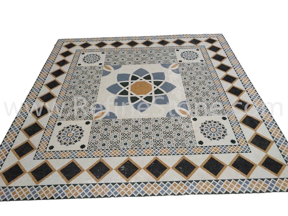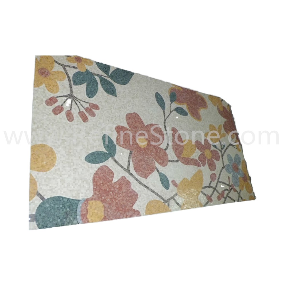A set of marble or other stone mosaics in proper mosaic designs have broad applications. More and more mosaic floors, mosaic ceilings, mosaic walls and outdoor mosaic paving are seen in modern building construction projects. Refine Industrial Co.,LIMITED designs and produces hundreds of beautiful styles of the stone mosaics, including marble mosaic, granite mosaic, onyx mosaic, travertine mosaic and mixed stone mosaic, in the form of stone mosaic pattern, marble mosaic medallion, marble mosaic tiles, stone mosaic arts and stone mosaic border. All our stone mosaics are mounted on sheets and ready for installations. Our stone mosaics are fully customizable in dimension, chip color, chip size and chip shape. We have large production capacities for the production of stone mosaic items. Special discounts on large orders of all stone mosaic products.