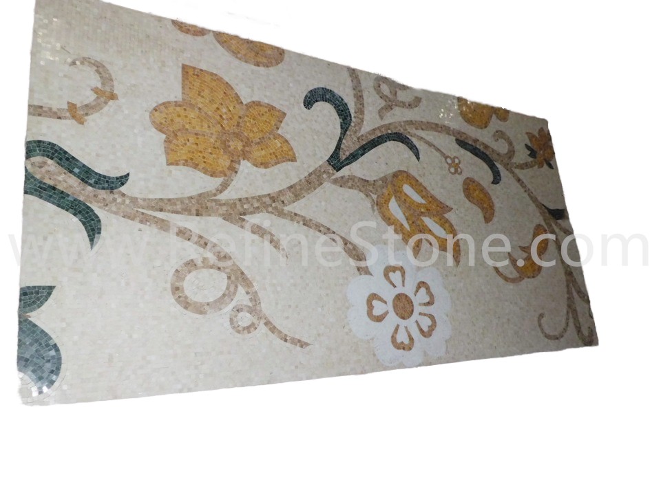 Five basic categories of stone mosaics are: stone mosaic pattern, made of chips in different shapes and sizes; stone mosaic tile, assembled with uniform chips for simple decoration; marble mosaic medallion, resembling inlayed medallion but in the form of mosaic; marble mosaic border, in stripe design for wall & floor bordering applications; and stone mosaic art. RefineStone’s stone mosaics are assembled by the hands of well-trained craftsman, based on drawings of professional designs.