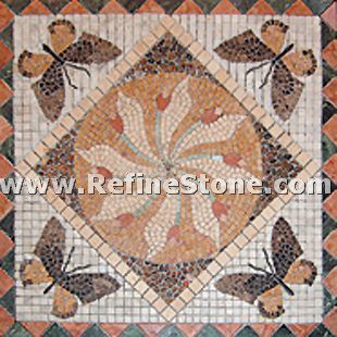 A set of marble or other stone mosaics in proper mosaic designs have broad applications. More and more mosaic floors, mosaic ceilings, mosaic walls and outdoor mosaic paving are seen in modern building construction projects. Refine Industrial Co.,LIMITED designs and produces hundreds of beautiful styles of the stone mosaics, including marble mosaic, granite mosaic, onyx mosaic, travertine mosaic and mixed stone mosaic, in the form of stone mosaic pattern, marble mosaic medallion, marble mosaic tiles, stone mosaic arts and stone mosaic border. All our stone mosaics are mounted on sheets and ready for installations. Our stone mosaics are fully customizable in dimension, chip color, chip size and chip shape. We have large production capacities for the production of stone mosaic items. Special discounts on large orders of all stone mosaic products.