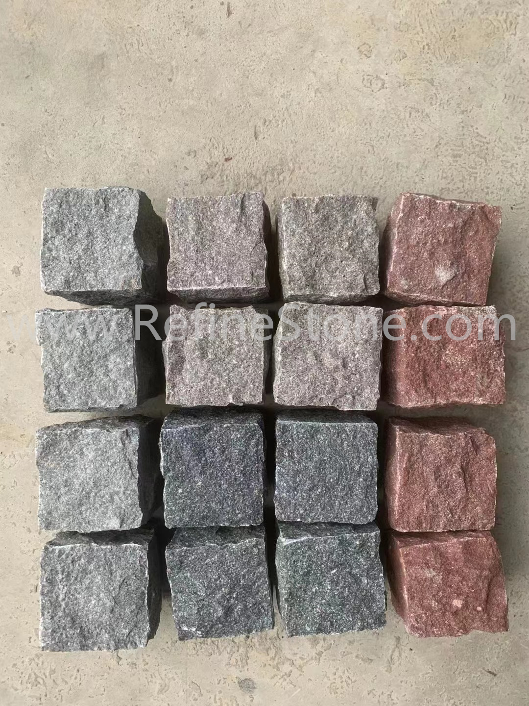 Porphyry, also commonly known as Cobblestone, makes it one of the strongest stones and most important materials both for paving and for cladding. It is not selected according to color, which vary greatly as a result of millions of years of moisture, oxides and concretions infiltration. The range of colors goes from grey to red and violet with several different shades. Porphyry stands wear and tear very well. It is resistant to all components of the atmosphere, such as ice and intense cold. Because of its chemical and physical features it is suitable for pedestrian areas and other areas subject to very heavy traffic. Porphyry's anti-slip quality, even in wet and icy conditions, allow for the paving of the streets, courtyards, gardens, parks and the creation of street furniture items. Porphyry comes in a variety of forms such as: <1>Cobbles, <2> Kerbstone, <3>Natural Cleft Tiles, <4>Machined Surface Tiles,etc.