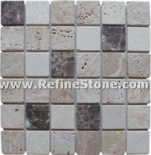A set of marble or other stone mosaics in proper mosaic designs have broad applications. More and more mosaic floors, mosaic ceilings, mosaic walls and outdoor mosaic paving are seen in modern building construction projects. Refine Industrial Co.,LIMITED designs and produces hundreds of beautiful styles of the stone mosaics, including marble mosaic, granite mosaic, onyx mosaic, travertine mosaic and mixed stone mosaic, in the form of stone mosaic pattern, marble mosaic medallion, marble mosaic tiles, stone mosaic arts and stone mosaic border. All our stone mosaics are mounted on sheets and ready for installations. Our stone mosaics are fully customizable in dimension, chip color, chip size and chip shape. We have large production capacities for the production of stone mosaic items. Special discounts on large orders of all stone mosaic products.